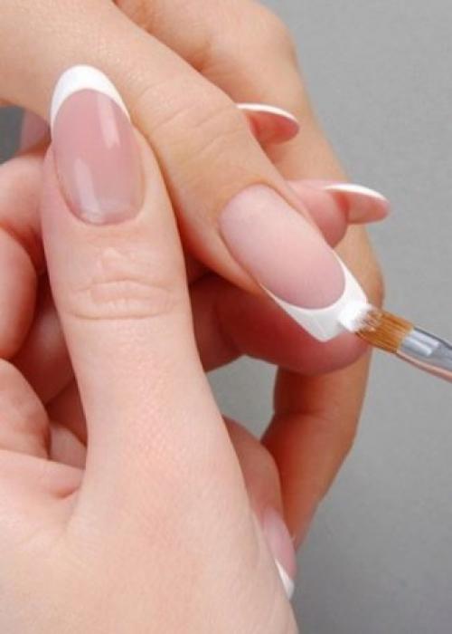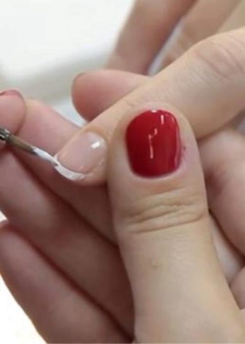 - Покрыть свободный край ногтя белым цветом (если это классический френч).