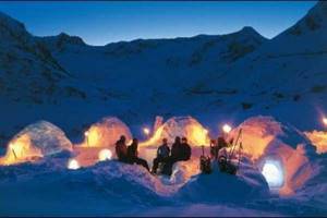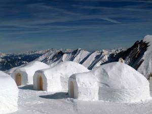 Иглу — это типичное для эскимосов место жительства. Данный тип строения представляет из себя постройку, которая имеет куполообразную форму. Диаметр жилища составляет 3-4 метра, а высота его — примерно 2 метра. Строятся иглу, как правило, из ледяных блоков или же уплотненных при помощи ветра блоков из снега. Также иглу вырезают из сугробов, которые подходят по плотности, а также по размеру.