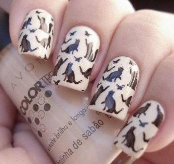 Модный пошаговый дизайн ногтей выполняется просто. Это может быть нанесение рисунка при помощи кисти, а может быть использование трафарета. В последнем случае, вполне можно обойтись и лаком с обычной кисточкой. Все зависит от сложности и оригинальности выбранного рисунка.