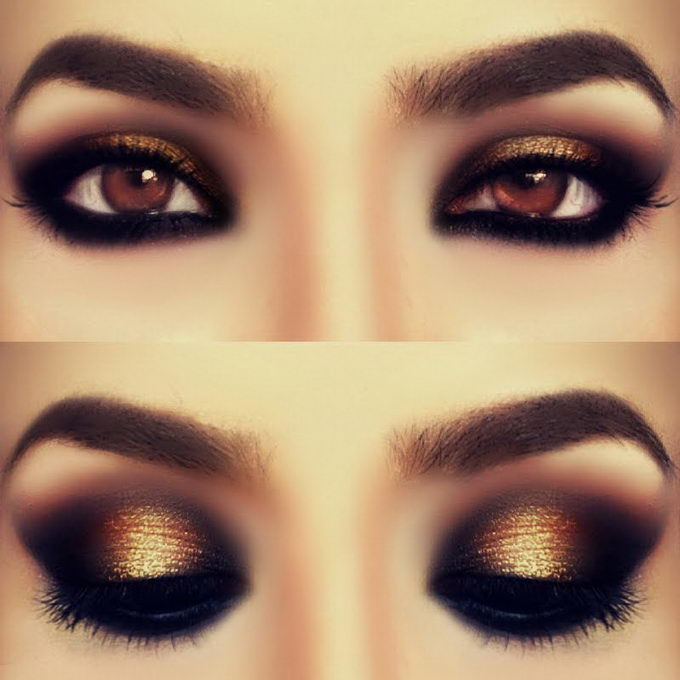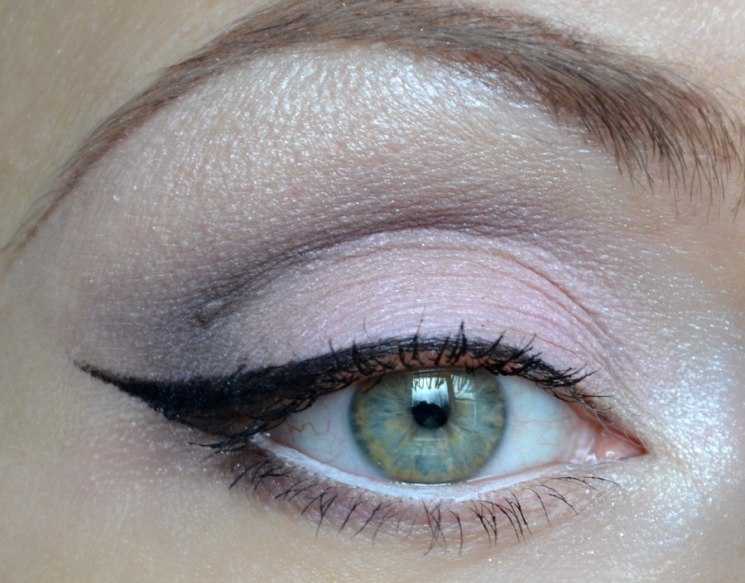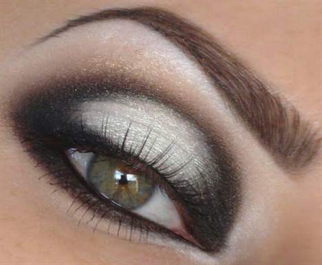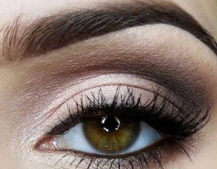 На область под бровью наносятся светлые тени или близкие к натуральному оттенку кожи.Однако с черными тенями нужно быть осторожной, выполнять макияж аккуратно и знать меру, чтобы не перестараться. Это, как правило, вечерний вариант для праздника, похода в ресторан, ночной клуб, кино