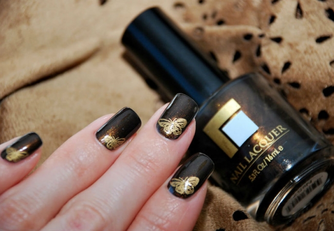 Посмотрите, как хорошо продвигается покрытие черным золотом. Все гвозди на этом рисунке имеют черное матовое покрытие, только на двух из них основное покрытие прерывается и дополняется алюминиевым листом цвета хаос. Результат поистине великолепен!