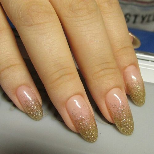 Эти крошечные сияющие элементы привлекают внимание к ногтям, визуально корректируя их форму и отвлекая от неровностей. Золото как фрагмент маникюра идеально сочетается со следующими базовыми тонами геля:
