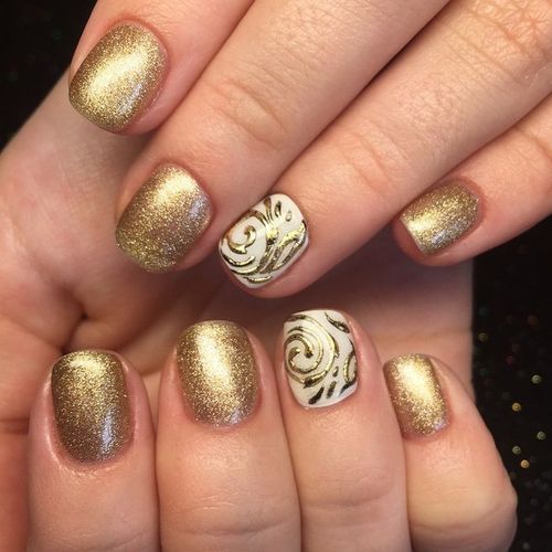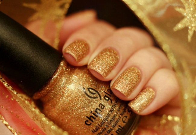 Существует несколько методик по созданию такого праздничного маникюра — можно использовать лаки золотого цвета, а можно на основу из черного или красного лака наложить золотистую фольгу. Все большую популярность приобретает аквариумная техника, при которой крупные блестки золотых оттенков помещаются внутри геля или акрила. Самый простой, но от этого не менее эффектный способ, который можно выполнить и в домашних условиях — использование лака с золотыми блестками.