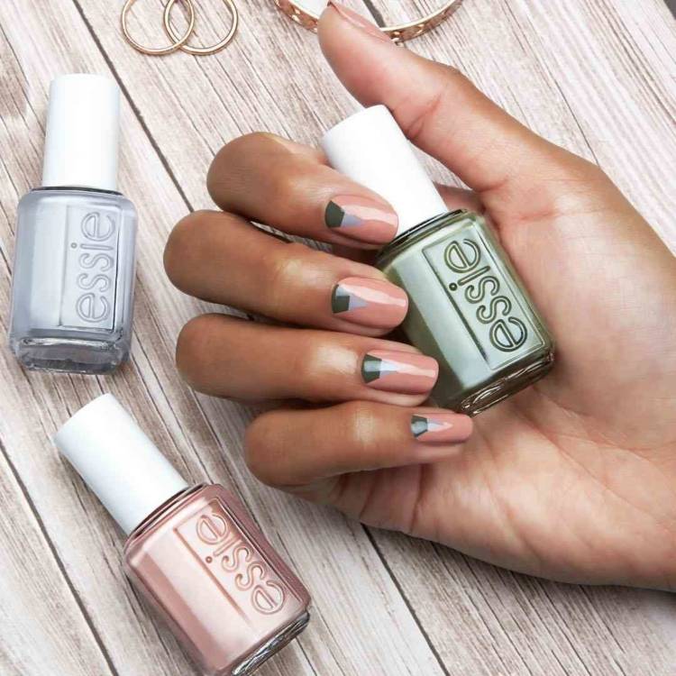 На пятом месте только набирающий популярность серый маникюр. Не каждый его оттенок будет уместен в обрамлении золота: например, стоит быть осторожными в отношении асфальтного и градации «бензин на воде». А вот нюдовый или пепельный серый вполне можно дополнить драгоценным блеском в виде улыбки или лунки, геометрического орнамента, лишь бы фон был равномерным и монохромным.