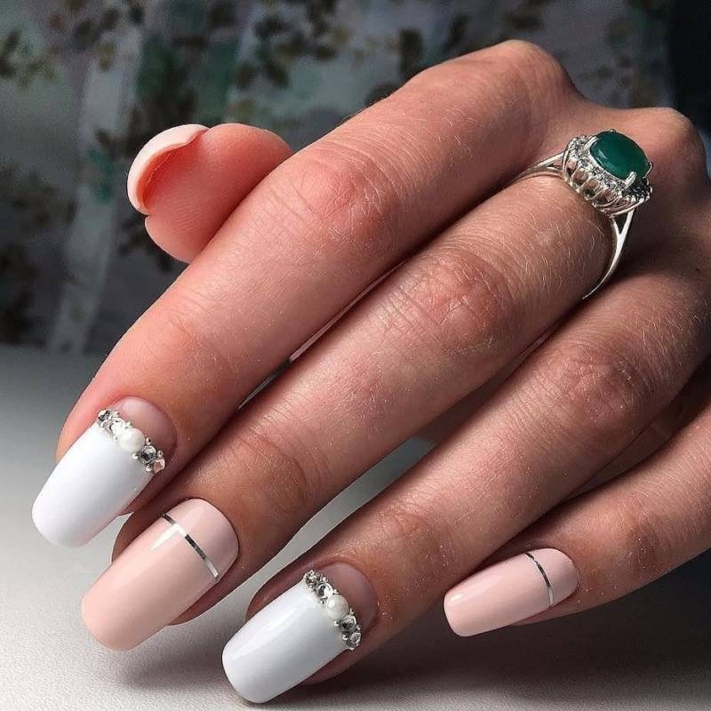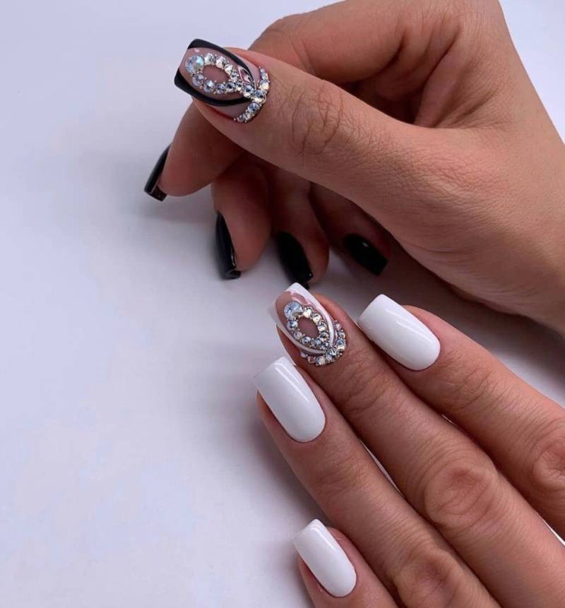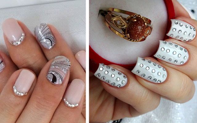Идеи дизайна маникюра со стразами для разной длины ногтей