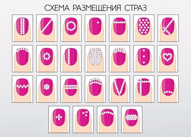 Выкладка страз на ногтях: варианты и схемы