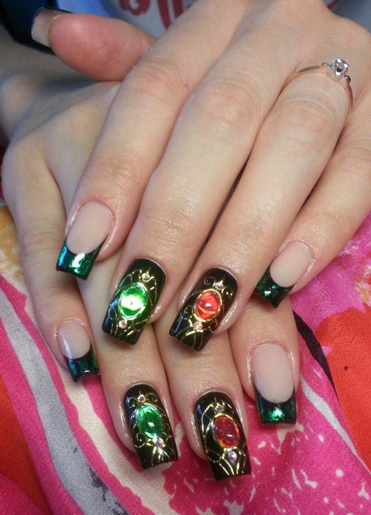 - Наслаждаемся полученным результатом. Комбинируя разный блеск и цвета, можно получить имитацию большого количества драгоценностей и любой дизайн ногтей с камнями.
