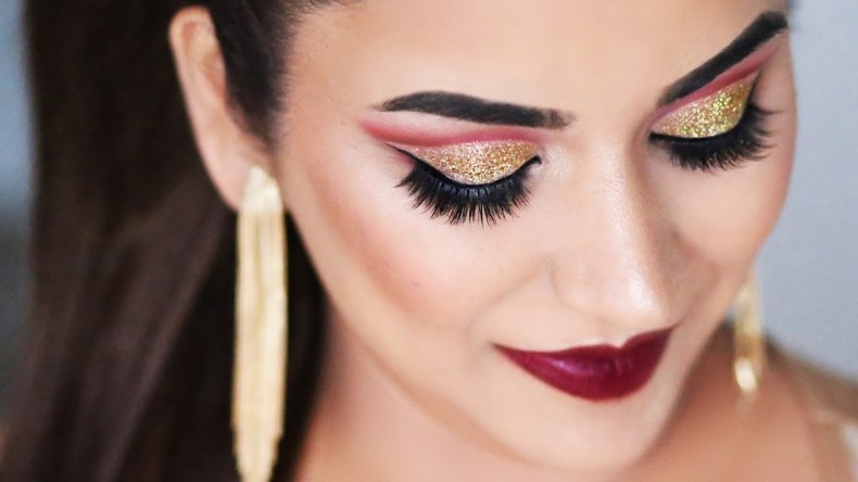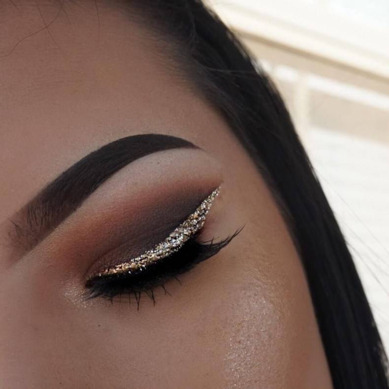 Белая подводка сможет визуально увеличить глаза, а черная – сделать взгляд глубже и выразительнее. Также в новогоднем макияже можно воспользоваться накладными ресницами, чтобы сделать взгляд ярче.