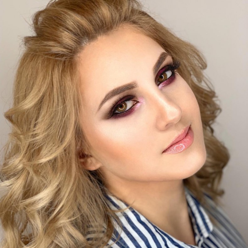 - В макияже отдайте предпочтение спокойным оттенкам – идеально подойдут коричневый, серый, синий или фиолетовый. Смоки в таком варианте будут выглядеть необычно.