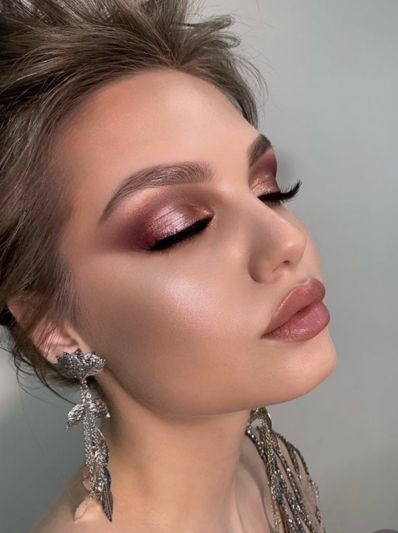 Создавая праздничный макияж на Новый год 2022 для зеленых глаз согласно модным тенденциям и фото, не стоит основываться на одном тоне. Это непременно должна быть целостная палитра. В качестве ключевых тонов для нюдового мейкапа или основы под любой яркий макияж стоит выбрать: