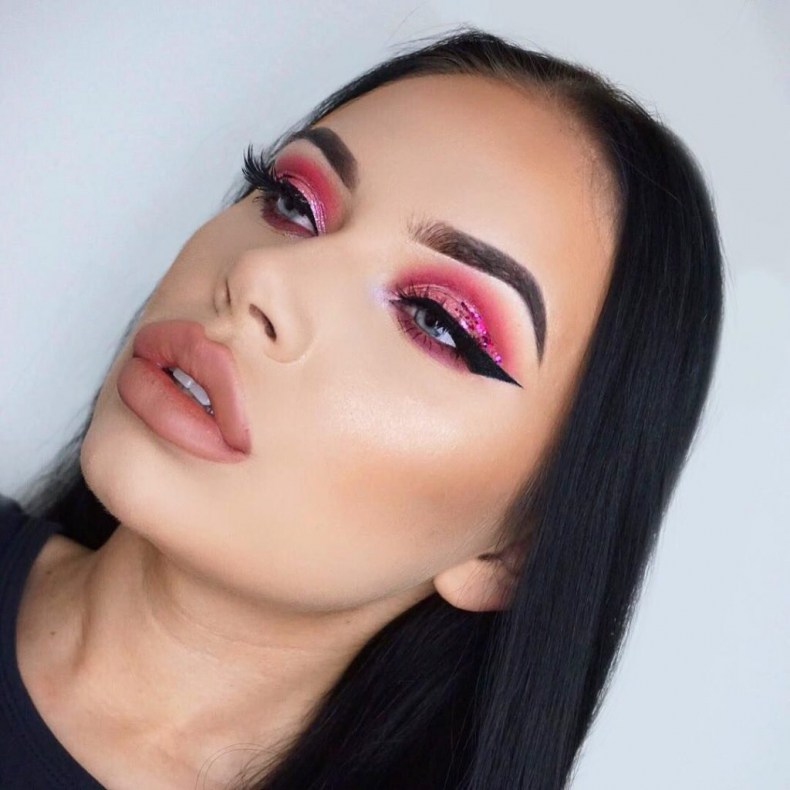В выборе туши для ресниц можно использовать и черную, и такую же, как волосы. Стоит отметить что второй вариант будет более эффектным. Брови должны в точности повторять цвет волос. Губы покрываем рубиновыми или вишневыми пигментами