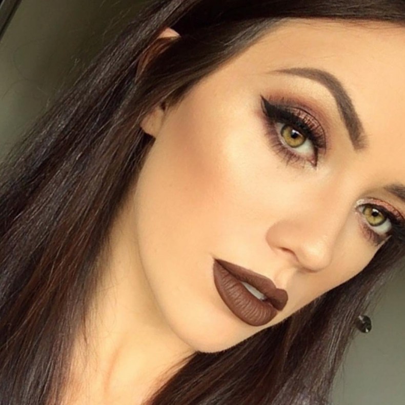 - Смуглым женщинам с темными волосами подойдут теплые тона, такие как персик, коричневый и бежевый. Очаровательными будут тени в тон радужке. Косметика с зеленой палитрой отлично дополняет коричневый цвет. Специалисты не советуют краситься зелеными броскими красками. Так как из-за этого можно потерять природное очарование взгляда в вечернем мейкапе.