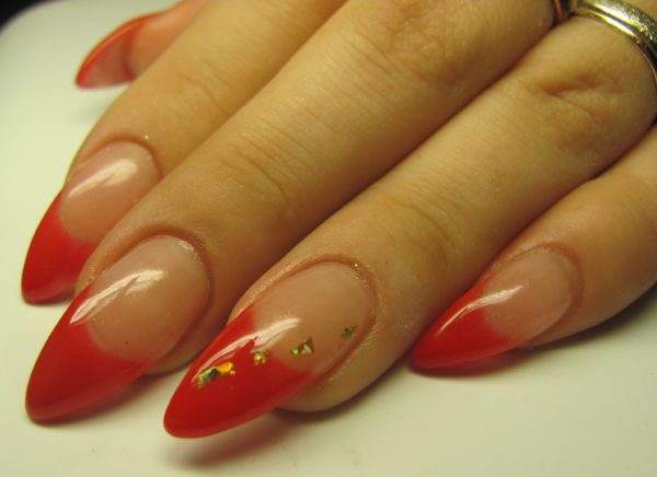 Проще всего создать красивую и правильную конфигурацию миндаля при помощи наращивания гелем или акрилом – по внешнему виду искусственные ноготки практически не отличаются от натуральных. Довольно длинные ногти отрастить не всегда получается, а на нарощенных сразу можно нанести модный френч, любой декор будет смотреться стильно и современно.
