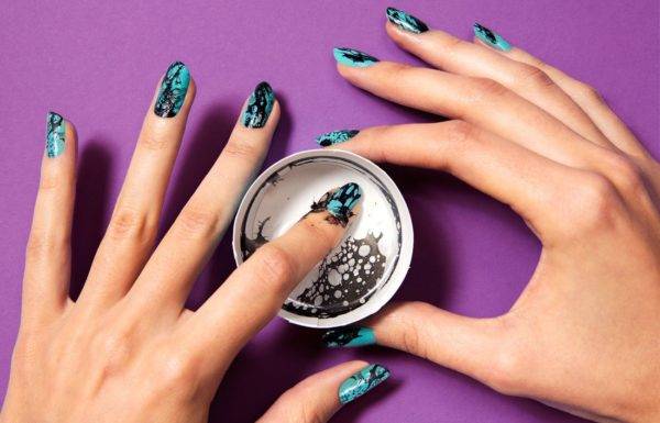 Для работы требует подготовить емкость с водой и гель лаки. В воду нужно капать лаки, делать это можно в любом порядке. Любые идеи станут настоящим произведением искусства.