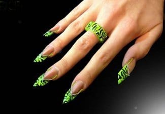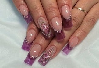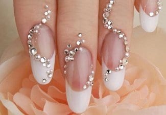 - – стилизованный френч: дизайнерский маникюр с использованием страз, узоров и рисунков;