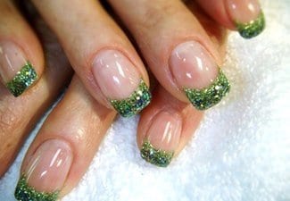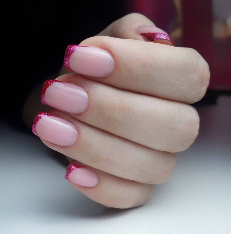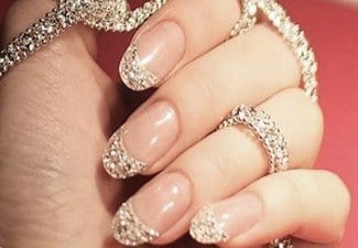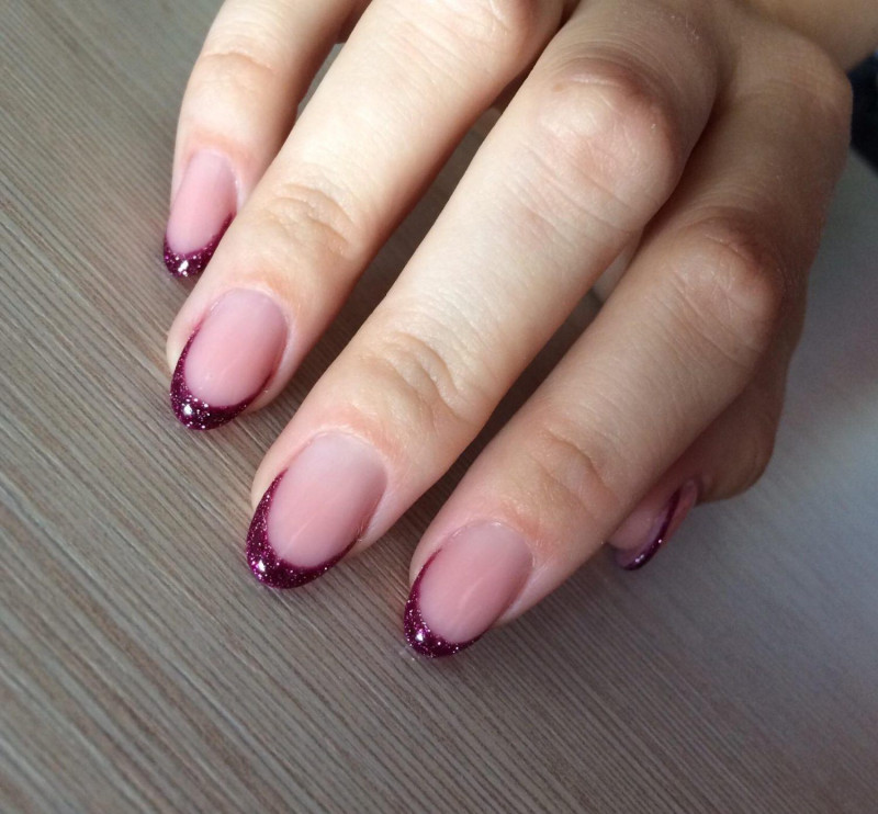- – френч-миллениум: кончик ногтя украшается блестками и микропылью с эффектом мерцания.