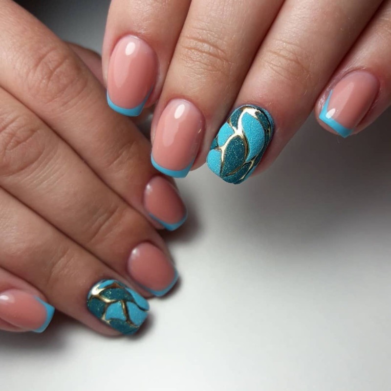 Часто блестками украшают кончик ногтевой пластины или базальную область, благодаря этому получается акцент в маникюре. В основном это делается только на нескольких ногтях. Этот вариант отлично подойдет для любого случая, потому что он не слишком яркий и выглядит нежно. Также многие мастера по маникюру используют блестки только в качестве акцента, а именно украшают рисунки. То есть изначально французский маникюр сочетается с монограммами, геометрическим рисунком, кружевными вставками, когда все готово, дизайн можно подчеркнуть блестками. В результате получается роскошный объемный маникюр с мерцающими деталями. Он подходит для любого случая, поэтому в 2020-2021 году он особенно актуален.
