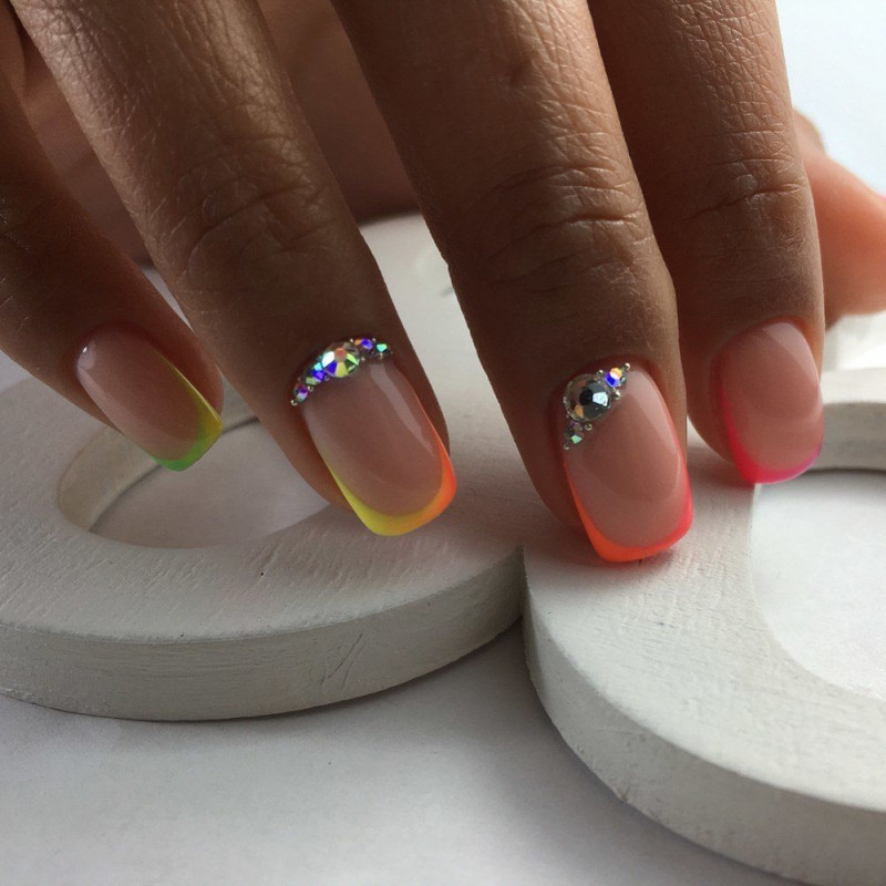 Цветной французский маникюр – это выбор смелых девушек, открытых к модным экспериментам. Выбирайте самые разные варианты дизайна, декора, комбинируйте их между собой. Только таким образом можно получить стильный, актуальный в 2020 году маникюр.