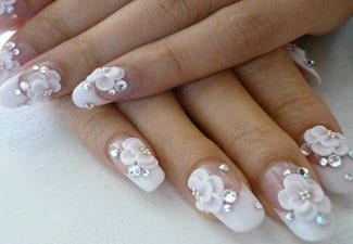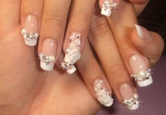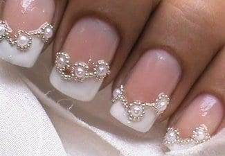 - – свадебный френч: в дизайн включаются элементы рисунков свадебного платья или украшений с него;