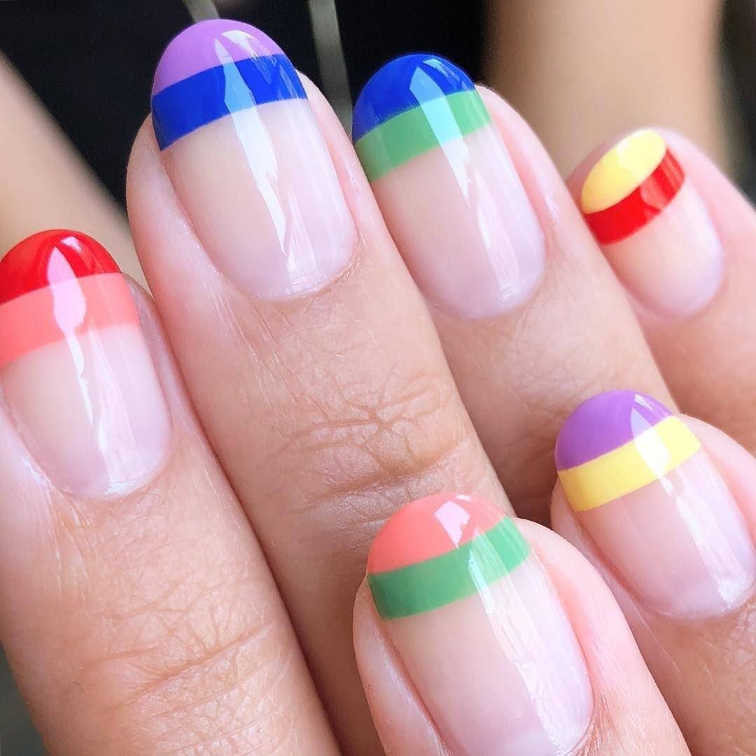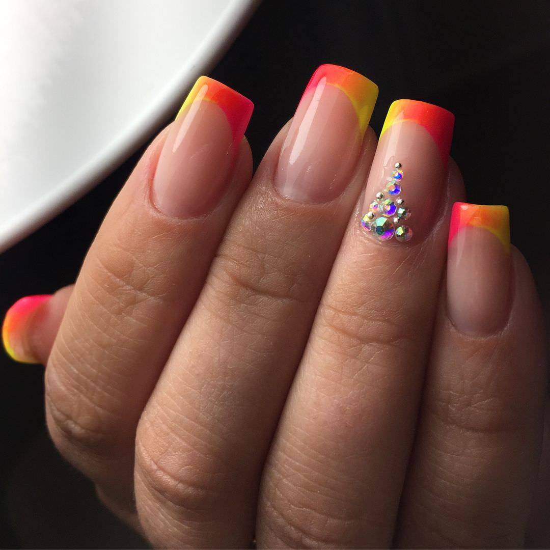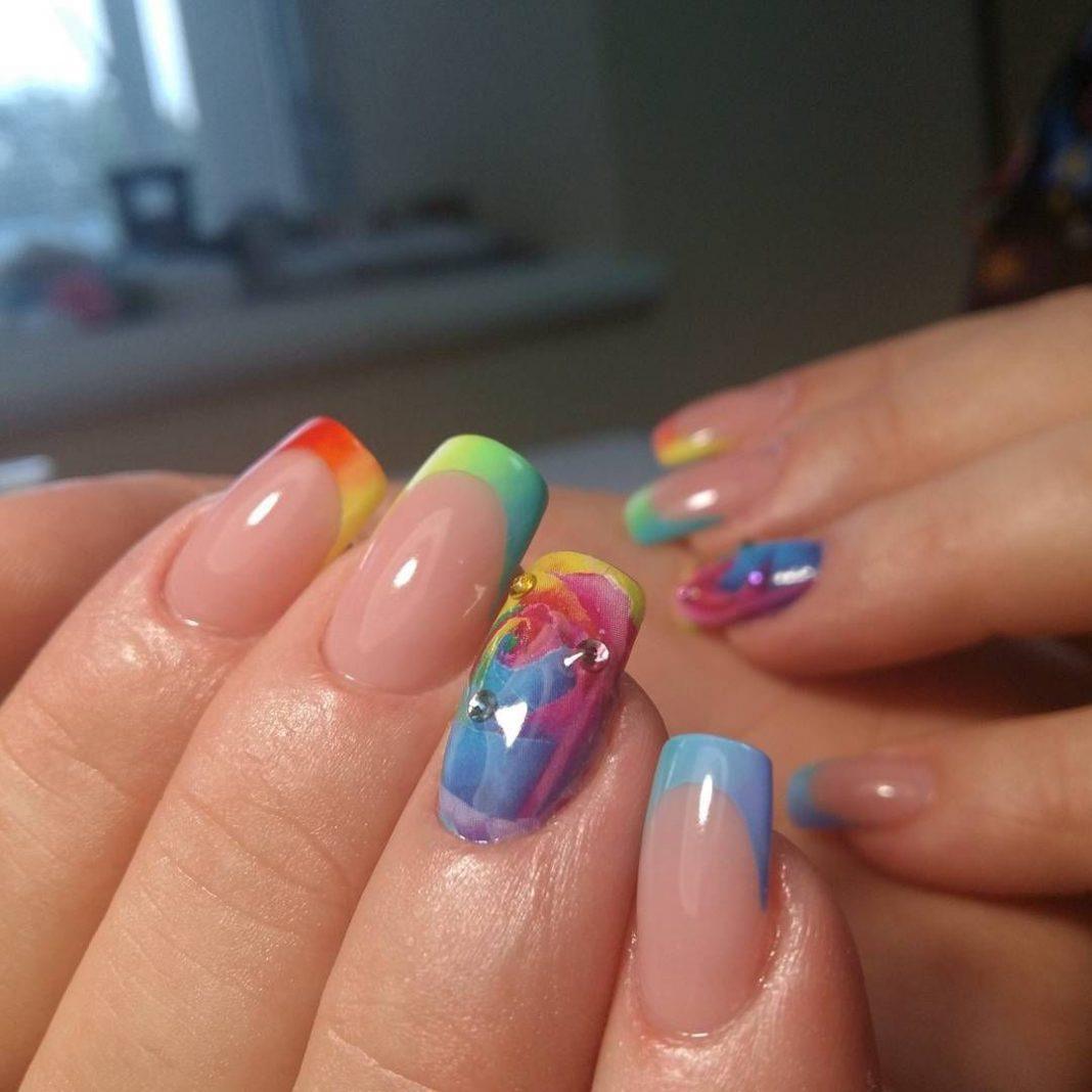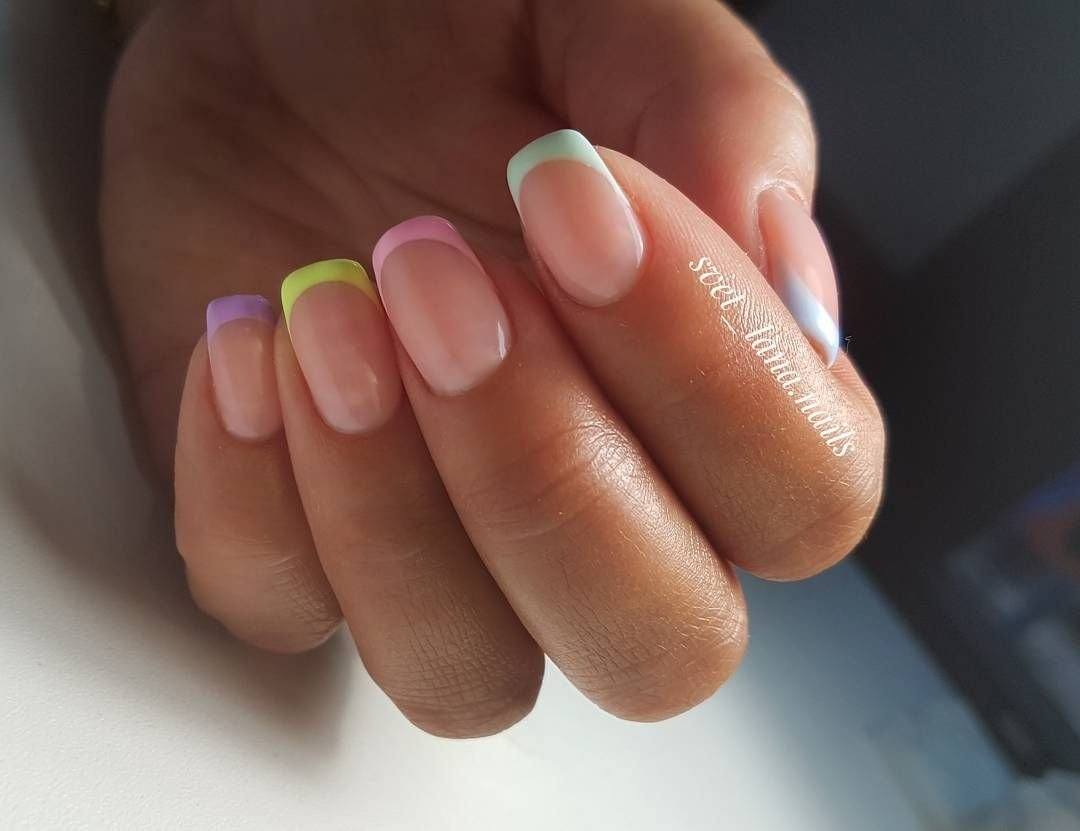 Цветной французский маникюр – это выбор смелых девушек, открытых к модным экспериментам. Выбирайте самые разные варианты дизайна, декора, комбинируйте их между собой. Только таким образом можно получить стильный, актуальный в 2020 году маникюр.