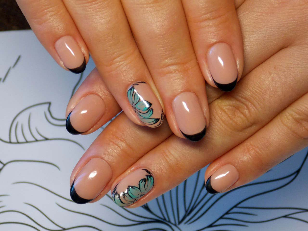 - – стилизованный френч: дизайнерский маникюр с использованием страз, узоров и рисунков;