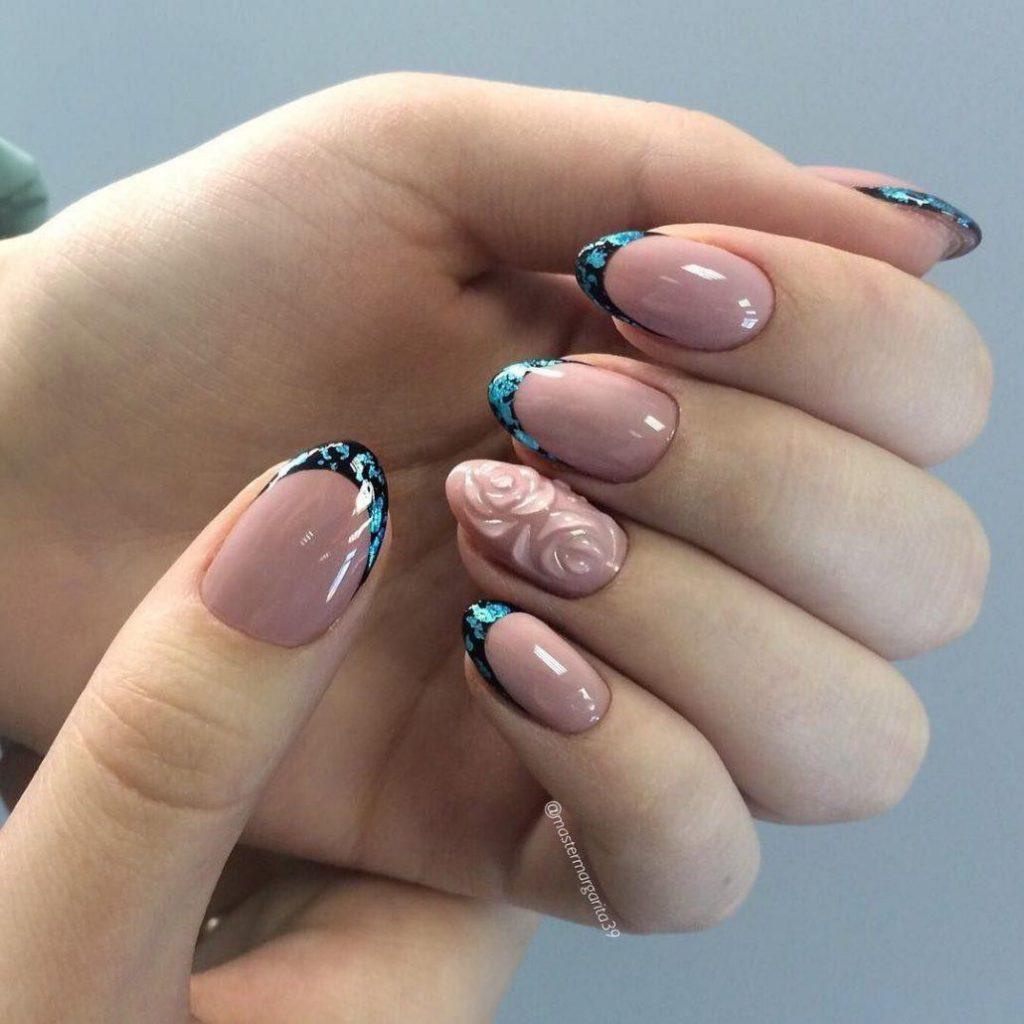 Часто блестками украшают кончик ногтевой пластины или базальную область, благодаря этому получается акцент в маникюре. В основном это делается только на нескольких ногтях. Этот вариант отлично подойдет для любого случая, потому что он не слишком яркий и выглядит нежно. Также многие мастера по маникюру используют блестки только в качестве акцента, а именно украшают рисунки. То есть изначально французский маникюр сочетается с монограммами, геометрическим рисунком, кружевными вставками, когда все готово, дизайн можно подчеркнуть блестками. В результате получается роскошный объемный маникюр с мерцающими деталями. Он подходит для любого случая, поэтому в 2020-2021 году он особенно актуален.