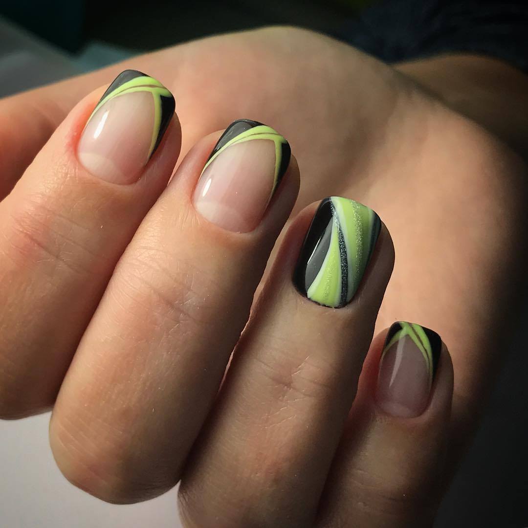 - – голливудский френч: кончик ногтя окрашивается не в форме «улыбки», а зигзагом;