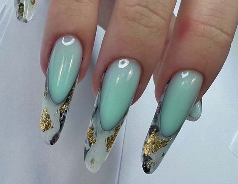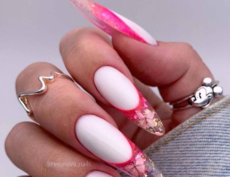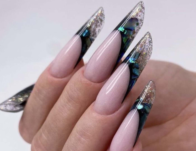 Этот маникюр дает огромные просторы для творчества. А с помощью современных материалов можно создать шедевры на ногтях. За последнее время в выкладном френче можно выделить несколько трендов.