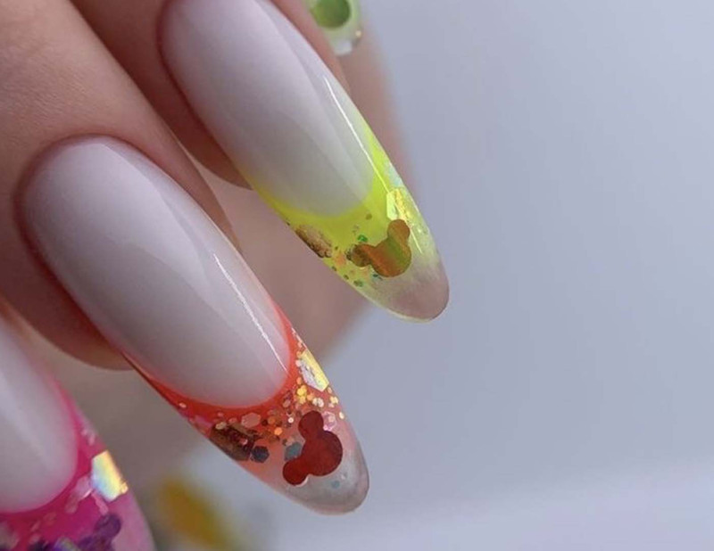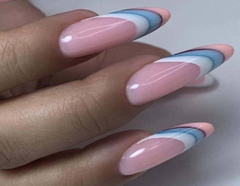 Все чаще стилисты предлагают разбавить классическое сочетание двухцветного френча третьим цветом: в тон или, наоборот, контрастным.