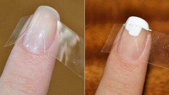 - наклейте трафарет для френча или скотч, отступив от кря ногтя;
