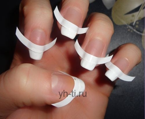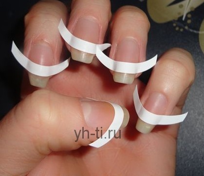 - Наклеить на ногти трафареты для линии «улыбки».