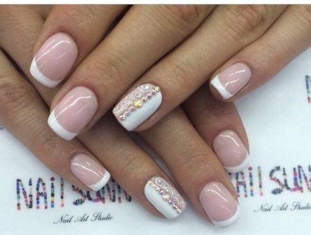Френч на ногти средней длины можно выполнять не только в классике, но и комбинировать с рисунками, стразами и тд. Это позволяет сделать длина ногтевой пластины. Шикарно смотрится французский маникюр в классике, со стразами, с рисунками, с блестками, с декором и другие. Продвинутые мастера выполняют французский маникюр гель-лаком, который предоставляет больше возможностей для творчества и воплощения самых экстравагантных дизайнов. В новом сезоне моды в области нейл-арта приобретают популярность необычные способы оформления ногтей и нестандартный взгляд на внешний вид френча.