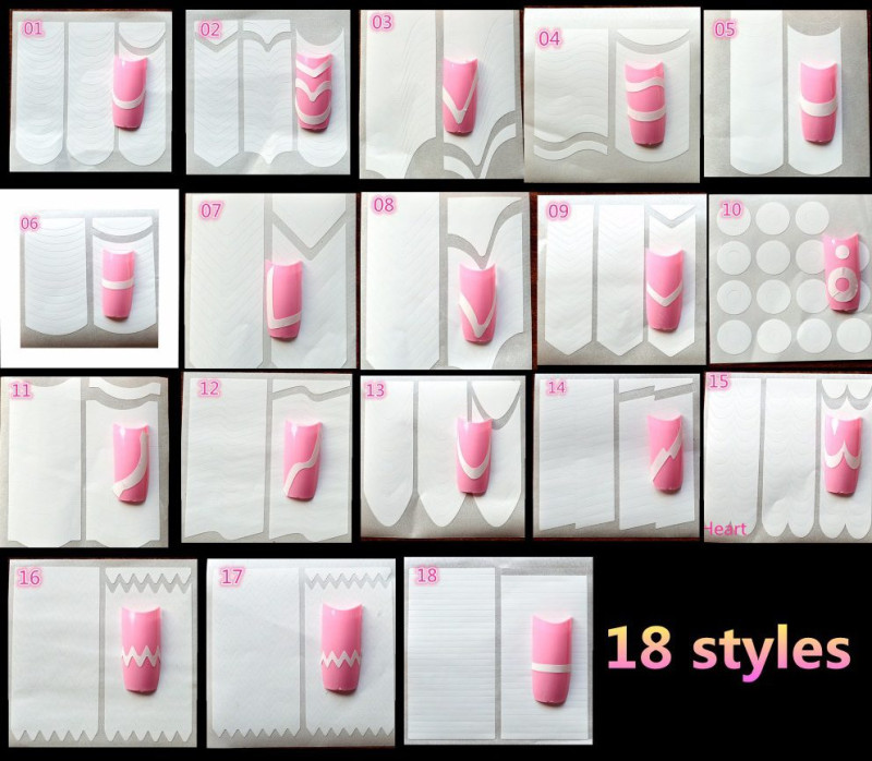 Для тех, у кого дома имеется принтер, необходимо приобрести самоклеющуюся бумагу формата А4. В интернете есть множество шаблонов трафаретов для френча, их можно скачать и распечатать (ниже приведем самый интересный). Такие самодельные полоски не отличить от покупных.