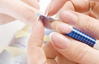 Подбираем форму по размеру ногтя, подставляем под его свободный край.