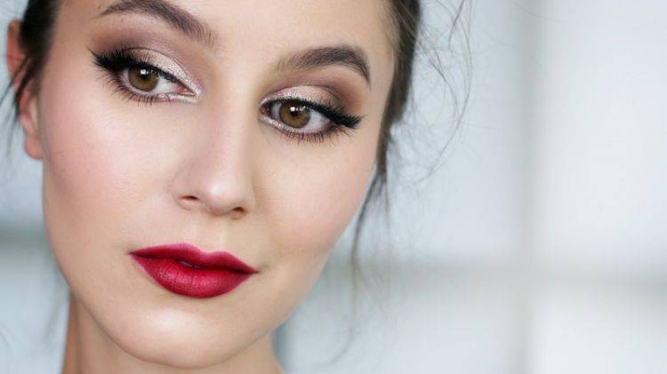 Вечерний макияж как правило предполагает не только выразительные глаза, но и яркий акцент. Иногда можно обойтись одной помадой.