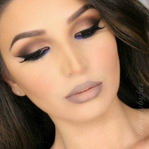 - Для завершения вечернего макияжа, серыми тенями красят нижнее веко так, чтобы линии расширились к внешнему уголку глаза. Линию нужно соединить со стрелкой.