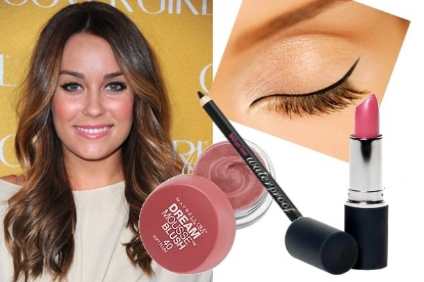 После нанесения на лицо основы, предпочтительно бежевого естественного цвета, брови слегка подкрашивают светло-коричневым карандашом, выделяя их форму. Верхние веки покрываются песочными тенями, а складочки век и наружные уголки глаз подчеркиваются коричневыми. Коричневым карандашом делают подводку по линии нижних ресниц и по верхнему веку, начиная с его середины. Для вечернего макияжа подойдет терракотовый оттенок помады. Чтобы получить вечерний красивый макияж, для большей выразительности губ в вечернем свете можно добавить в их серединку капельку перламутрового блеска.