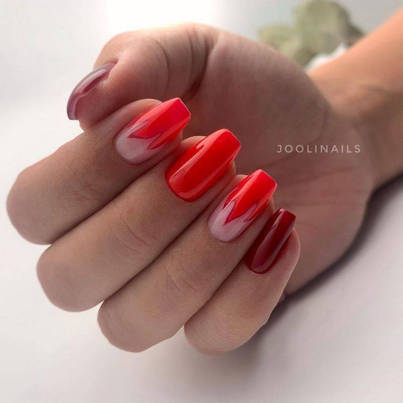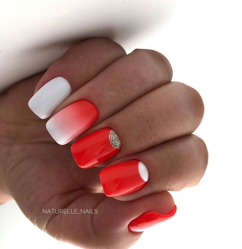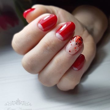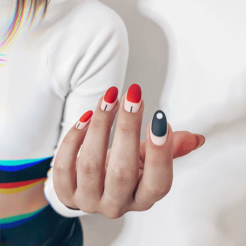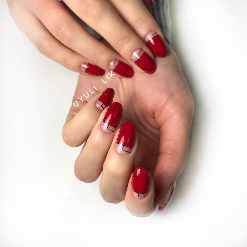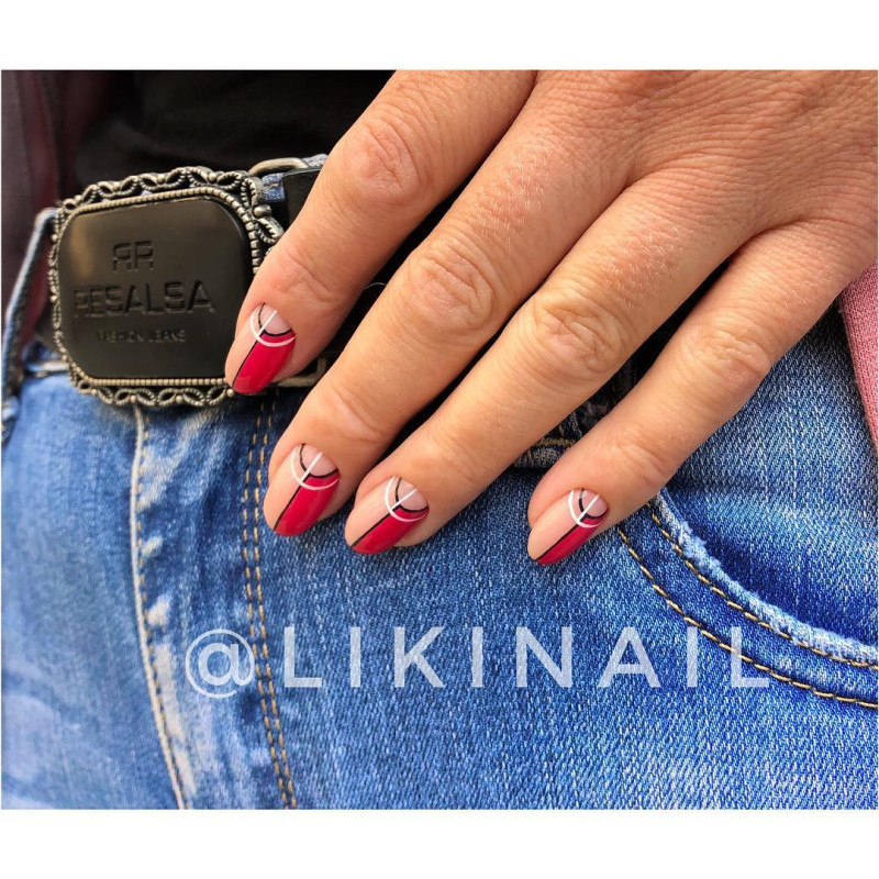 Принято считать, что красный маникюр идет только женщинам-вамп после 40. Как хорошо, что мы не верим в подобные нелепости! Красный имеет миллион подтонов, таких как коралловый или алый. Идеально сочетается красный с белым, но особого внимания заслуживает «вампирское» сочетание красный с черным. Такой лунный маникюр диты фон тиз добавит дерзкой пикантности образу любой девушки.