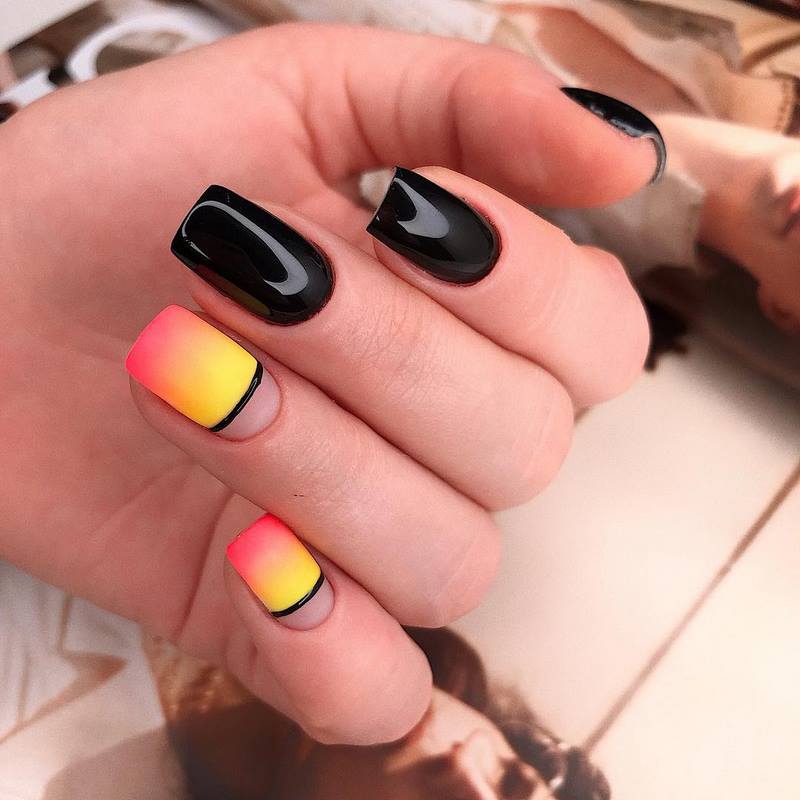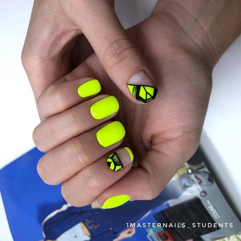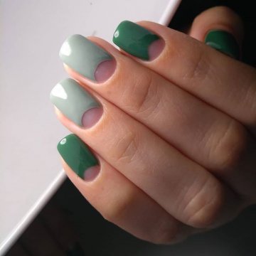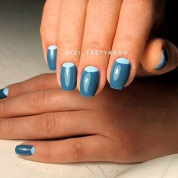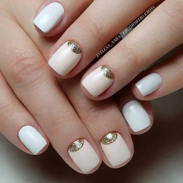 •	Игра контрастов – короткие ногти позволяют мастерам маникюрного сервиса поиграть с оттеночными композициями на основе контраста противоположностей. Черный с белым, кровь с молоком, желтый и сиреневый, кремовый и шоколадный – здесь можно выбрать любую комбинацию из контрастирующих цветов. В любом случае это будет выглядеть довольно оригинально и органично.•	Использование голограммы – голографический эффект особенно удачно комбинируется с прозрачной зоной лунулы, поэтому ее лучше оставить в первозданном виде. Красивыми и удачными сочетаниями голограммы с натуральным видом лунок считаются оттенки функсии, металлика, графита.•	Двойной лунный – интересным решением является оформление ногтей при помощи одного и того же или двух разных оттенков в зоне лунулы и в основе ногтевой пластины с их граничным разделением полосочкой натурального прозрачного геля. К примеру, интересным вариантом считается украшение лунок белоснежным гелем с последующим оставлением в прозрачном виде граничной линии лунки и покрытие основы кремовым матом. При этом получается как бы двойная акцентировка внимания на улыбке лунки.
