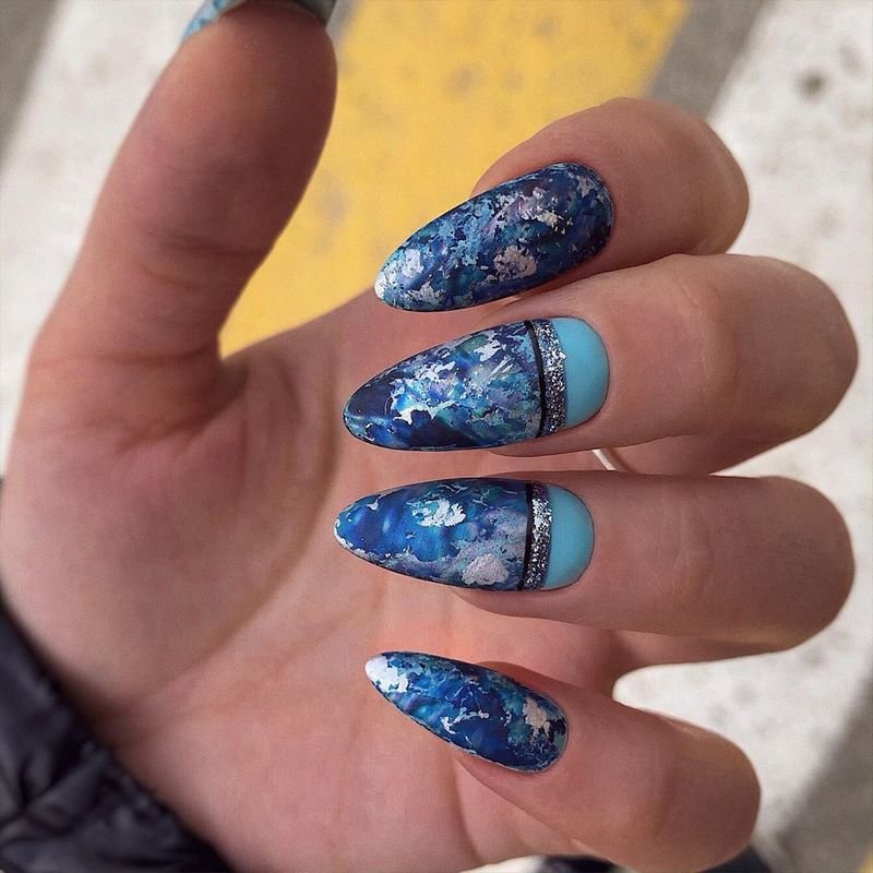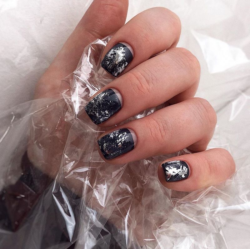 Лунный маникюр с фольгой