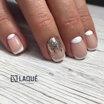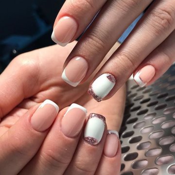 Если ты без труда справилась с первым вариантом, и хочешь создать оригинальный и изысканный маникюр для особого случая, предлагаю тебе совместить лунный нейл-арт с классическим френчем.