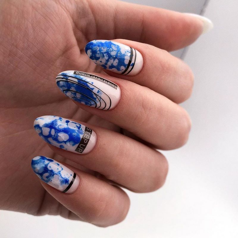 Подобного рода рисунок удачно смотрится на ноготках совершенно различной длины и формы. В случае коротких ногтей маникюр выглядит аккуратным, визуально удлиняет ногтевые пластины. Когда ноготки длинные, располагать узор можно в любой точке ногтевой пластины, добавляя дополнительные украшения. Для вдохновения и пробуждения фантазии к созданию подобного нейл-арта можно посмотреть представленные ниже тематические фотографии.