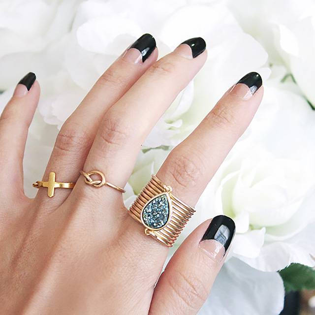 5. После высыхания темного лака покрываем все для надежности закрепителем, который также должен высохнуть. Лунный маникюр готов!