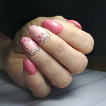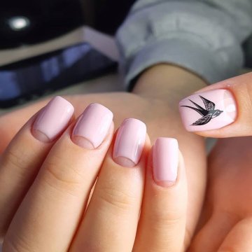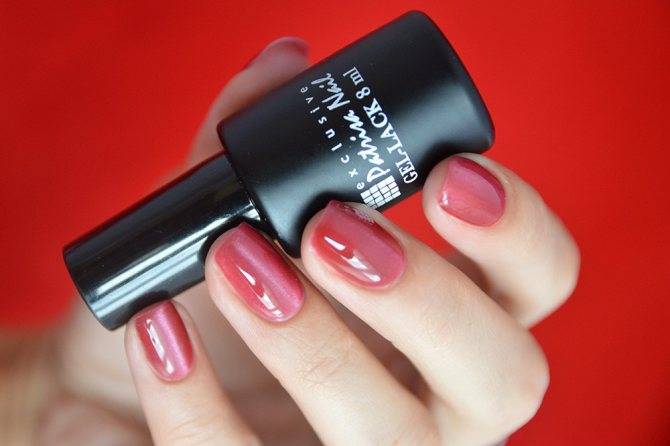 - Наносим на всю площадь ногтя лак базового розового оттенка. При необходимости повторяем процедуру.