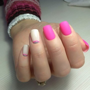 Цветовая гамма при этом выбирается индивидуально каждой конкретной любительницей, но важно помнить, что зона улыбки француза и область лунулы должны быть идентичны в своём цветовом окрасе.