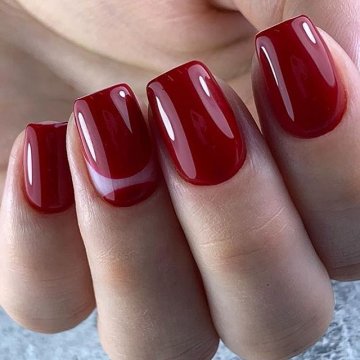 Нанесите прозрачный лак на подготовленную поверхность ногтя. Дайте ему полностью высохнуть и покройте ноготь равномерным слоем насыщенным, плотным лаком в красных оттенках. После полного высыхания нанесите еще один закрепляющий слой прозрачного лака.