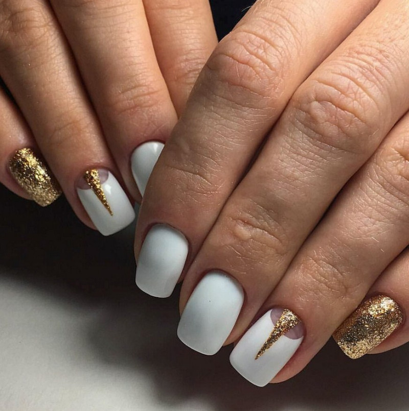 Золотой – это как классика жанра, нет ничего лучше, чем сочетание: золотой-красный, черный-золотой, бело–золотой. Он словно подчеркивает красоту ярких, насыщенных цветов в маникюре.