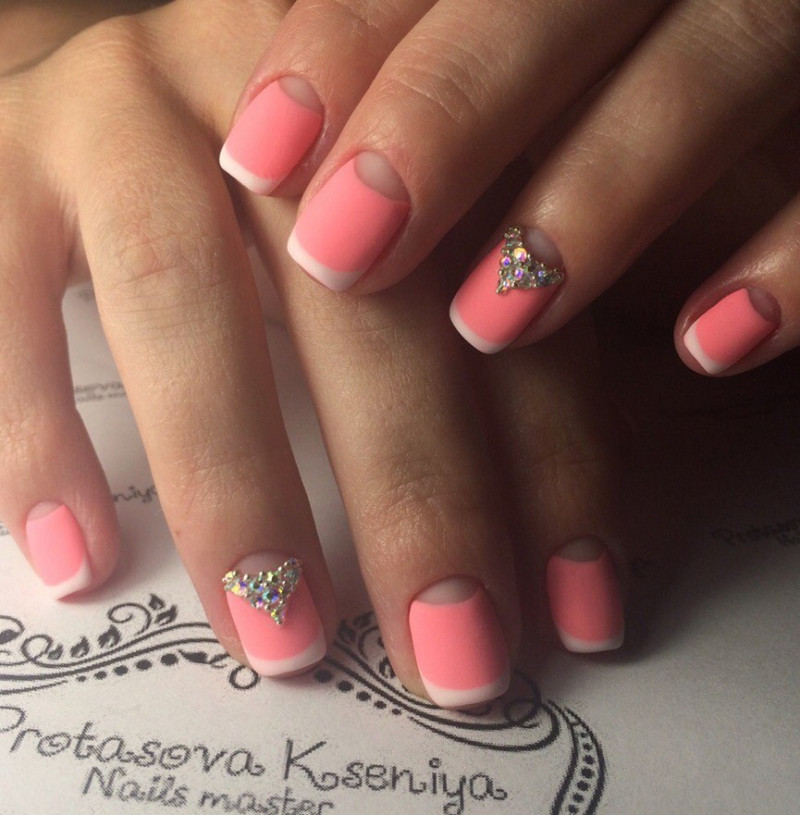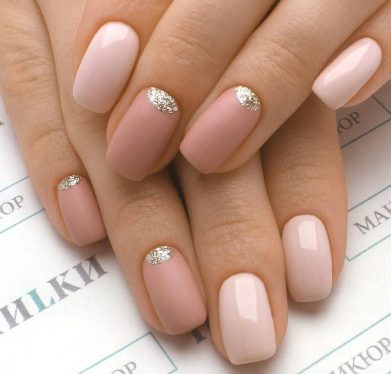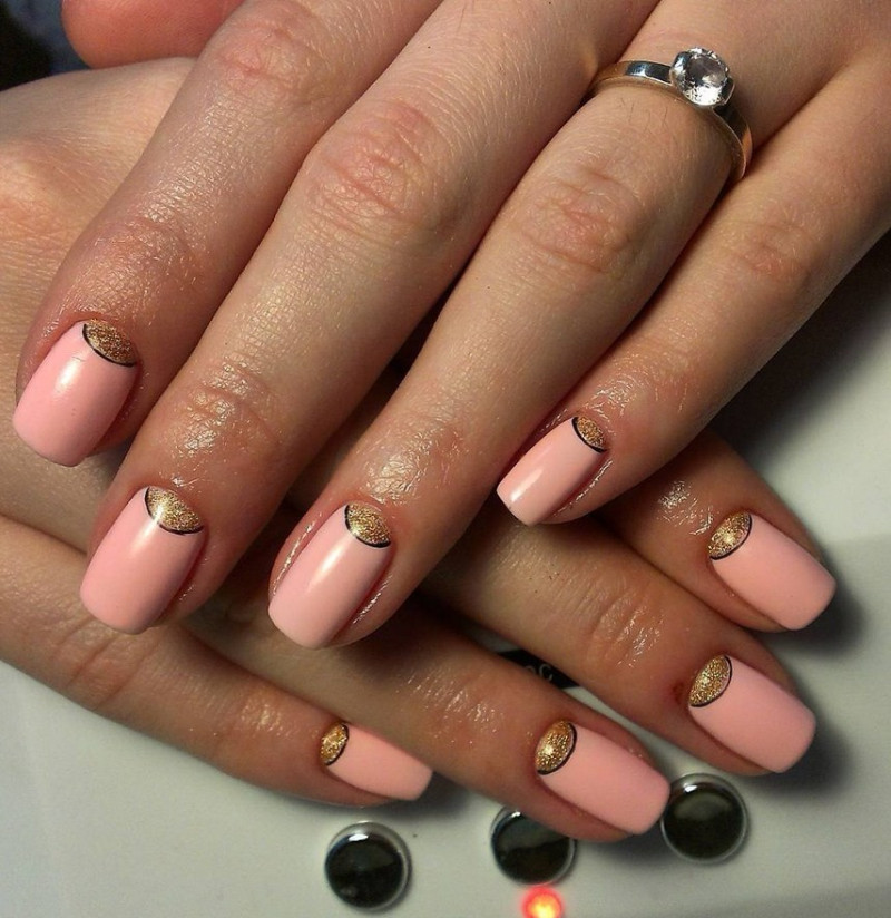 К классике относится нейл-арт, выполненный в нюдовой и розовой гамме. Выбор оттенков огромный: как совсем бледные пастельные тона и «пыльная роза», так и насыщенный лиловый, фуксия.