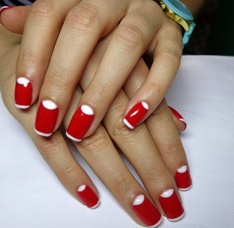 Если же вы понимаете, что нанеся два выбранных лака друг на друга, они сольются или будут просвечивать, то сначала нарисуйте аккуратные лунки, а после их полного высыхания закрасьте основную часть ногтя контрастным лаком. Не забудьте закрепить слои прозрачным лаком.