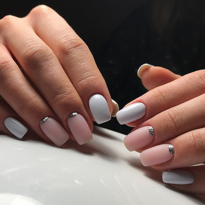 - Очень красиво на таком маникюре смотрятся блестки – они не забивают градиент цвета. Их можно использовать как укрепитель.